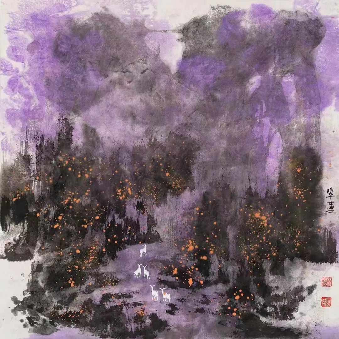 乔翠莲艺术简介: 乔翠莲,1951年6月26日生,郑州人,原籍河南省周口市沈丘。名慕平,字冰清,号如水,字巧姐,号乔牡丹。斋堂号:耕耘女,冷月斋。国家一级美术师。是中国新意绘画开创人,现任中国抽象艺术研究院副院长,中原书画院常务副院长,《中原书画报》常务副总编,中原美术学院特聘教授,中艺抽象艺术院名誉院长,香港美术家协会理事,香港高等美术学院教授,中国国画家协会会员,河南省美术家协会会员,先后被评为中国著名的国礼画家,中国非遗传承领军人物之一、中国冬运会文化形象大使、中国知识产权形象大使,2022年建国73周年被国家文化旅游部授予“一代艺术大师”,荣获“中国伟大艺术家”荣誉称号。 乔翠莲笔耕墨耘近五十个春秋,受教于当代艺术大家周韶华、刘文西、刘国松、于志学、舒春光等导师,致力于中国画的继承、发展、探索、创新的研究;花鸟、山水画经历了吸收传统、走向生活、意象创作、大胆创新、泼墨泼彩五个阶段的升华与嬗变,形成了深邃意境与新意象哲理融会贯通的醇厚、质朴、灵动、朦胧、含蓄的崭新个人面貌;她将传统绘画中没骨、泼墨和重彩技法结合起来,并汲取了西方抽象艺术和现代艺术的美感因素,开创了化线为面、色墨交融、工写兼施、没骨写意的新途径;她以造化为师,南游长江三峡,北陟长城燕山,东登泰岳,西及华山。又临桐柏山、嵩山、伏牛山、老君山、王屋山、太行山、嵖岈山、熊耳山、石人山、鸡公山,沿黄河两岸写生,记下了丰富的手稿。她曾于河南博物院举办个人展,于广东深圳等地举办个人展览。出版有《乔翠莲花鸟画集》《乔翠莲国画作品选》《乔翠莲新意象作品集》《乔翠莲新意象绘画研究》,由天津人民美术出版社出版《中国近现代名家•乔翠莲》画集(大红袍);其作品先后在国家文化部、中国文联、国家知识产权总局、中国美术家协会、河南省美术家协会等单位举办的权威性书画展览中30多次入选、获奖、入书;山水四组合新意象画荣获第九届当代中国山水画展金奖;花鸟《争春》荣获文化部中国诗书画院主办的“全国画院院长作品展”银奖,并被载入大型画册;新意象画《荷塘清韵》荣获中国文联书画艺术交流中心举办的“第六届海峡两岸书画大展”金奖;作品载入《近现代中国美术史》《新中国美术图史》《99百杰书画家精品集》等30多部权威画集;艺术传略载入《东方之子》《世界名人录》《海峡两岸书画名人录》等40多部大型辞典;其作品发表在150多家报刊杂志上,并被党中央原副主席李德生、全国人大原副委员长布赫、吴阶平、王光英,全国政协副主席赵南起及国内外文化教育机构、文博单位收藏。 “笔墨当超时代”是乔翠莲的治学观点和绘画宗旨。在不断的否定自己中肯定自己,永无休止地探索与创新。她说:“我珍惜老祖宗踩出的路,更喜爱自己摸索的路。我坚持避开捷径走自己的崎岖的路;我不爱吃他人的剩饭,也不爱吃自己的剩饭。画自己的画,自己走自己的路,自己才是自己的上帝。”其开创的新意象绘画艺术绚烂蓬勃、意象万千,具有中国传统审美理念和现代美术意蕴,令人过目难忘,回味无穷。